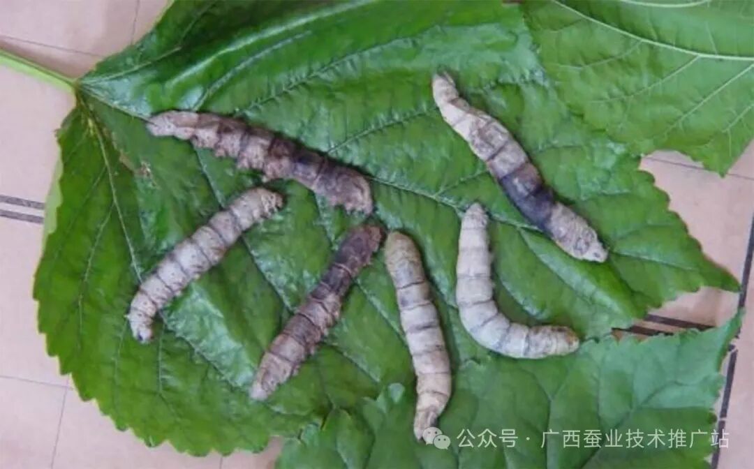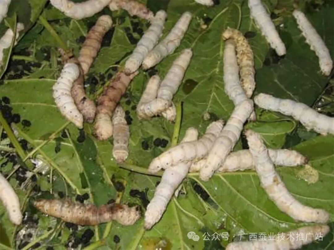 1.家蚕细菌病包括败血病、中毒病、肠道病等细菌性病害,在自然界中细菌种类多、数量大、分布广,而且广西蚕区气候高温多湿、养蚕批次密集、蚕头密度大等因素有利于细菌繁殖感染为害家蚕。因此,在广西蚕区养蚕生产发生一定程度的家蚕细菌病危害,特别在春夏时期养蚕容易发生细菌病。